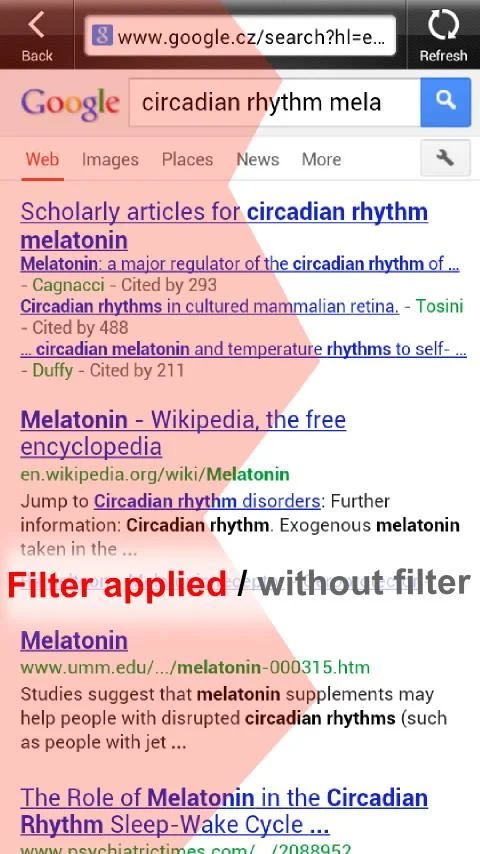 Filtr aplikacji, zmienia natężenie koloru niebieskiego na stronach lub w tekście. Ów niebieski kolor ma być odpowiedzialny za zaburzenie produkcji melatoniny ułatwiającej nasze zaśnięcie.