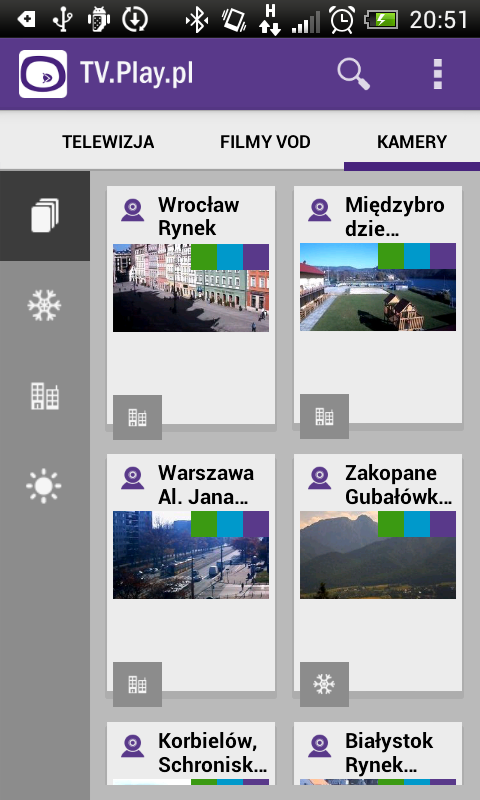 Możliwe jest także oglądanie podglądów z kamer umieszczonych w różnych częściach kraju, jednak i do tego wymagane jest założenie konta w aplikacji.